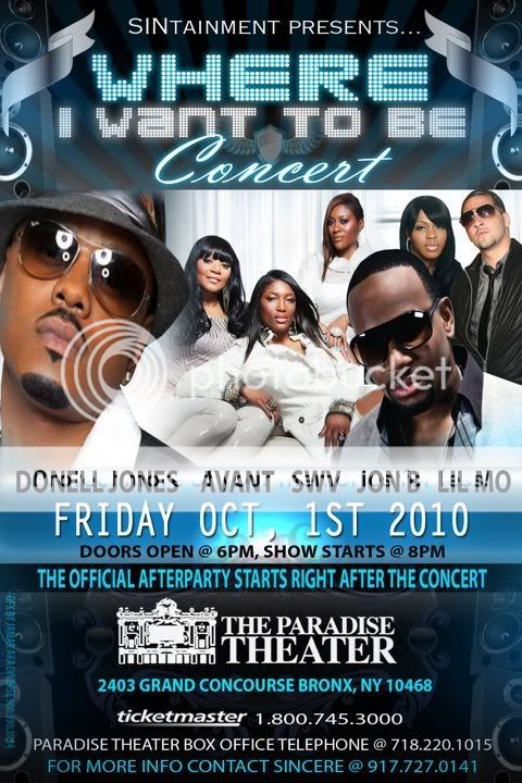 This show will now be held at the Paradise Theater in the Bronx, NY on October 1st. You won't find many other shows that will give you great r&b like Jon B., Avant and Donell Jones all in one, so make sure you get your tickets. Another amazing show being brought to you by Sintainment. Tickets are one sale now!